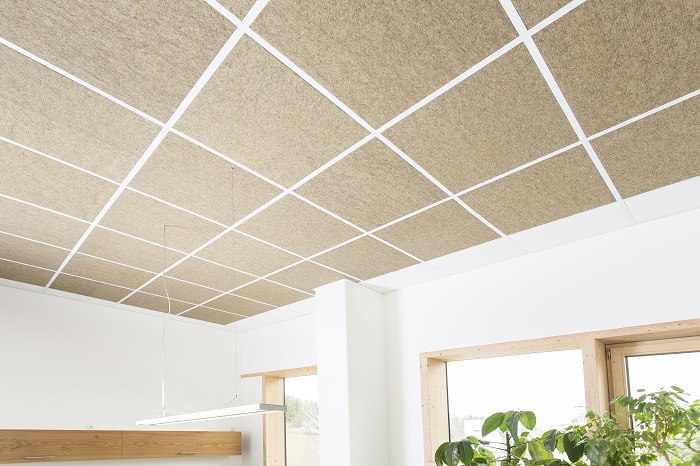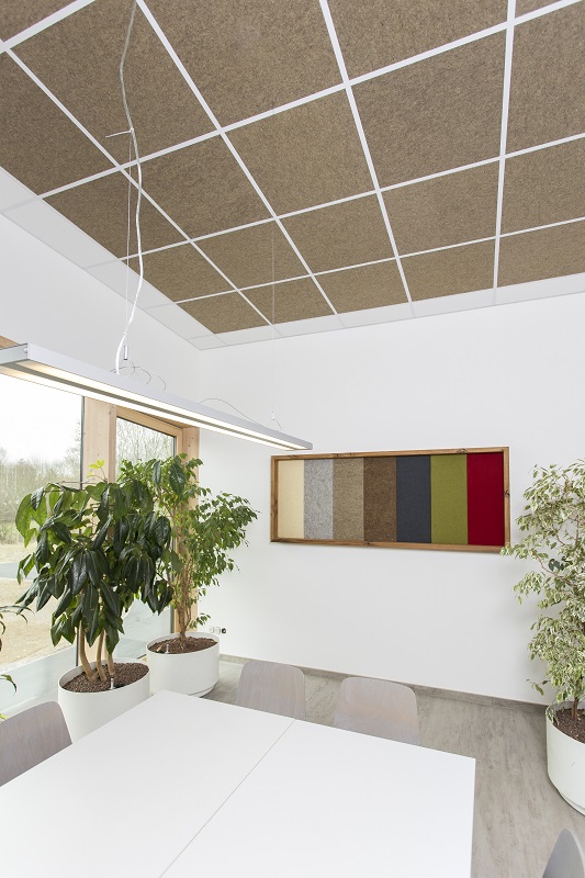 Produktinformationen "Akustikdeckenplatte für Rasterdecke, Schallabsorber, gesunde Raumluft durch Schafwollfilz, Farbe Mittelbraun"